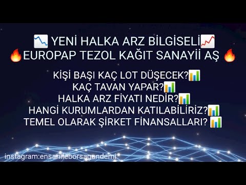 Türkiyenin en büyük 1000 ihracatçısı arasında yer alan ve saf selülozun yanı sıra geri dönüştürülmüş kağıt da üretebilen az sayıdaki şirketten biri olan Europap Tezol Kağıt Borsa İstanbul Menkul Kıymetler Borsasında işlem görüyor. Şirketin halka arzı. 1387 TL Sabit Fiyat Halka arz yöntemi hakkında Deniz Yatırım liderliğinde halka açılacak Europap Tezolda hem.