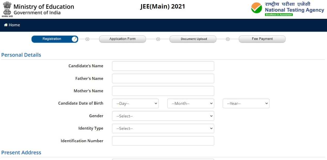 The registration process includes doing self registration then entering details in online application form upload documents and fee payment. Ministry of Education. JEE Main 2021 application form has been released for February Session by NTA on 16 th December 2020.